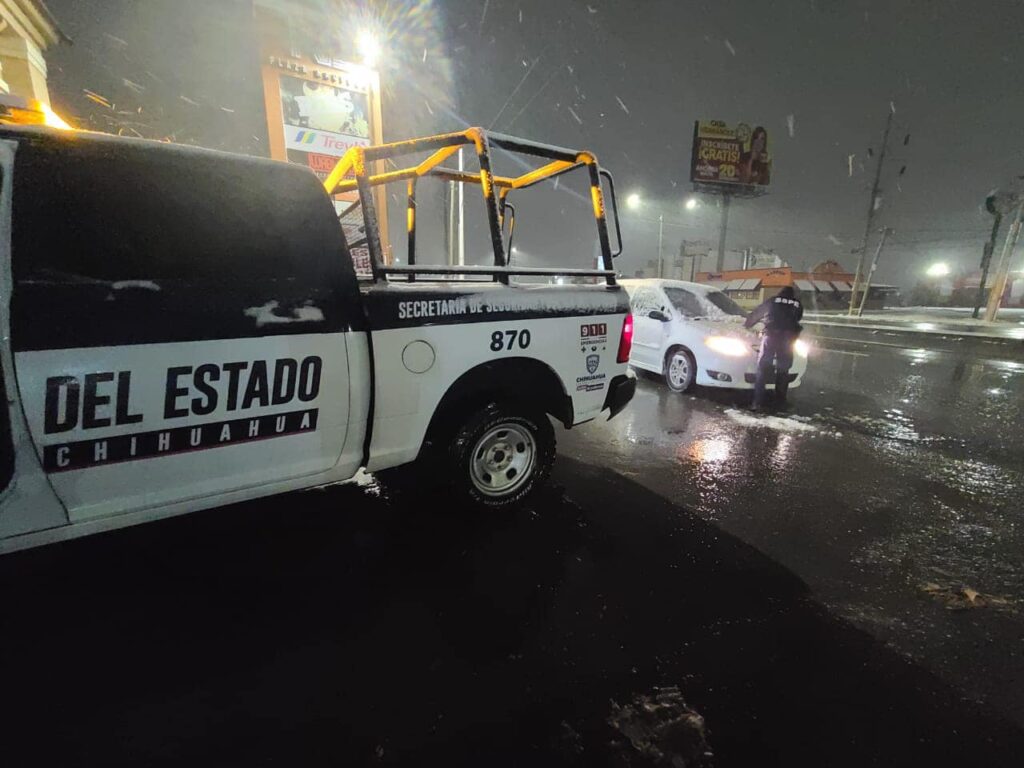 En Ciudad Juárez los policías estatales atendieron varios sectores; el primero en el cruce de la avenida Miguel de la Madrid y Santiago Troncoso, donde un ciudadano les solicitó auxilio debido a que su vehículo presentaba fallas mecánicas.