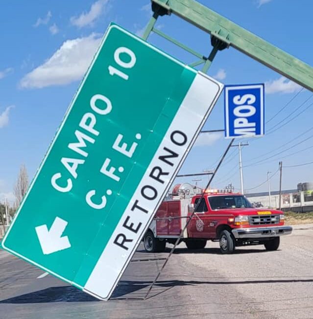 Cuauhtémoc, Chih.-Derivado de los fuertes vientos que se registran en la ciudad, este día a las 10:40 horas, se reportó en la seccional de Álvaro Obregón la caída de un señalamiento gráfico, propiedad de Gobierno del Estado, ubicado en el kilómetro 35 del corredor comercial Manitoba. No se reportan lesionados en estos hechos.