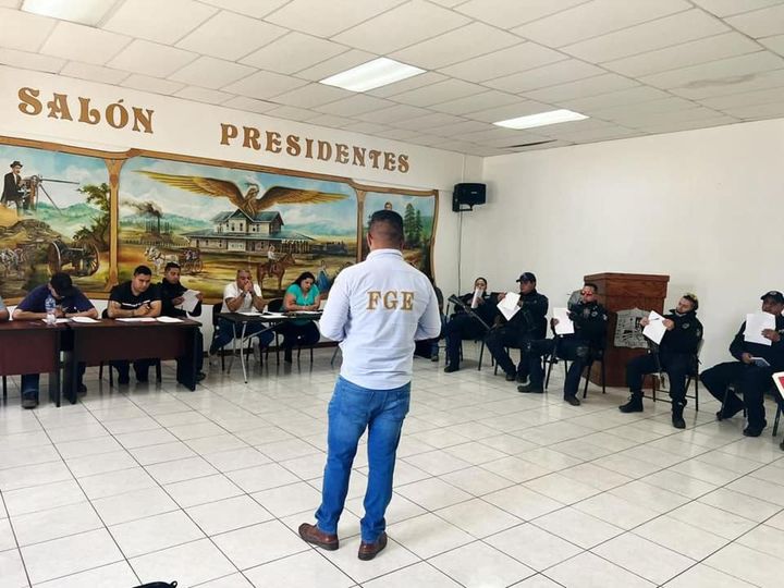 Agentes del Ministerio Público de la Fiscalía de Distrito Zona Occidente en el municipio de Madera, capacitan a policías municipales sobre el correcto llenado del Informe Policial Homologado (IPH).