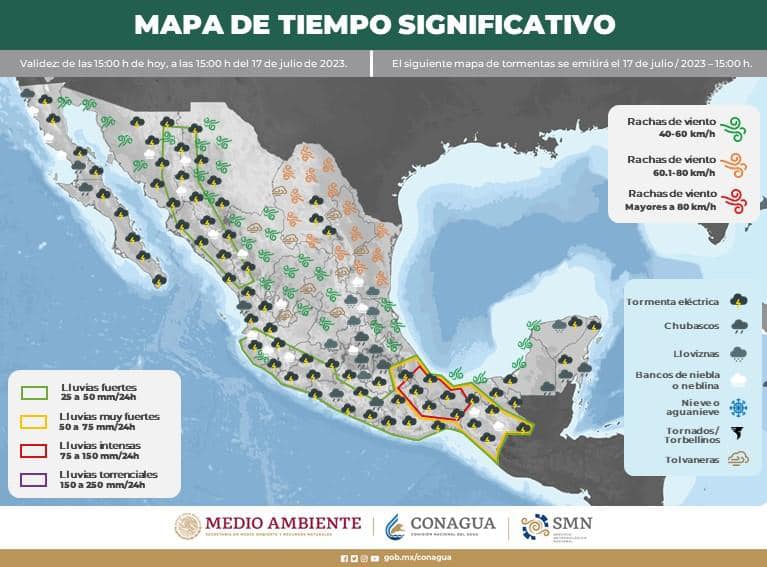 La Coordinación Estatal de Protección Civil (CEPC) informó sobre las condiciones climáticas previstas para hoy lunes 17 de julio y el pronóstico para mañana martes 18 de julio sobre el territorio estatal, donde prevalecerán las lluvias en la zona serrana.