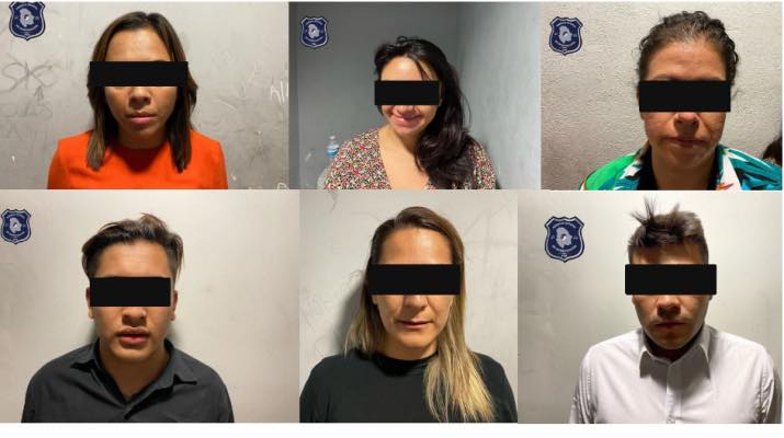 Tras recibir la denuncia por los citados hechos, elementos de la Agencia Estatal de Investigación acudieron al lugar donde detuvieron a: Edith Tamara A. M., Laura Julieta T. M., Eufemia Selene E. G., Sheila C. F., Arzú O. G., y Álvaro C. P., por el delito de fraude.