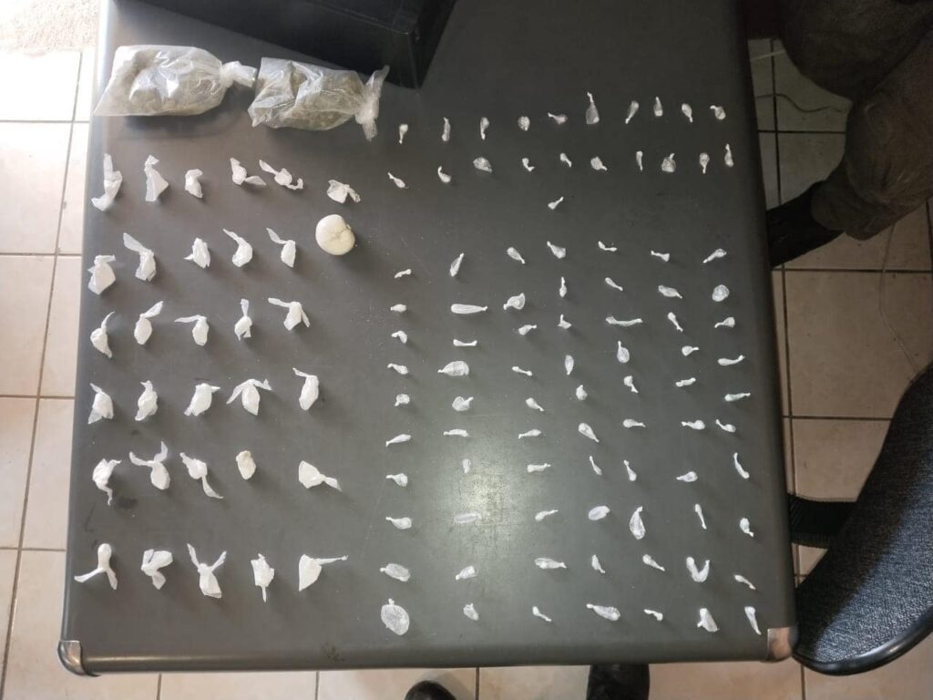 A la mujer se le localizaron 32 envoltorios de plástico con un polvo blanco y fino con las características de la cocaína, 91 porciones de una sustancia dura y blanca similar a la cocaína en piedra y 2 porciones de una hierba verde, seca y olorosa con las características de la marihuana, así como 2 mil 650 pesos producto de la venta de la droga.