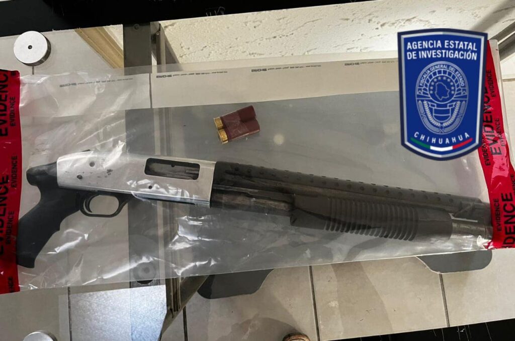 A la altura del entronque de La Junta a Creel, los agentes revisaron un vehículo de la marca Chevrolet, línea Tahoe, color blanco, modelo 2004, placas del estado de Nuevo México, Estados Unidos, encontrando en el interior una escopeta calibre .12 abastecida con dos cartuchos útiles.