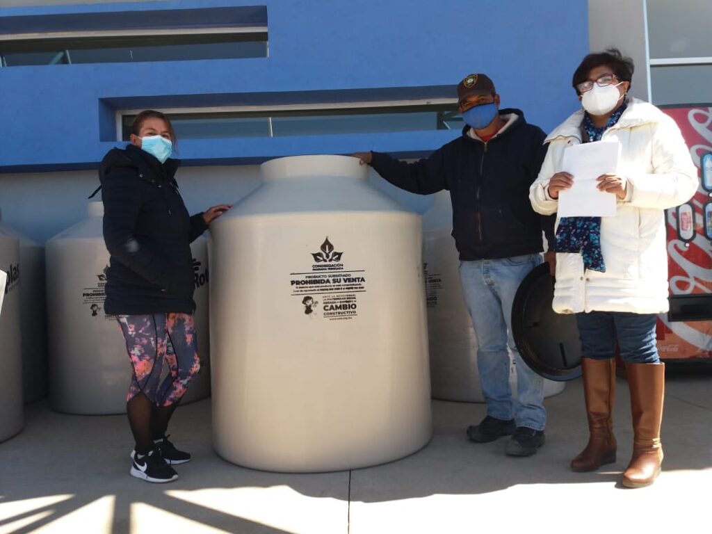 Mediante el convenio de colaboración establecido con la Congregación Mariana Trinitaria A.C. el Gobierno Municipal de Cuauhtémoc a través de la Dirección de Desarrollo Rural, entregó 20 tinacos subsidiados para el almacenamiento de agua a mismo número de familias residentes de la cabecera municipal.