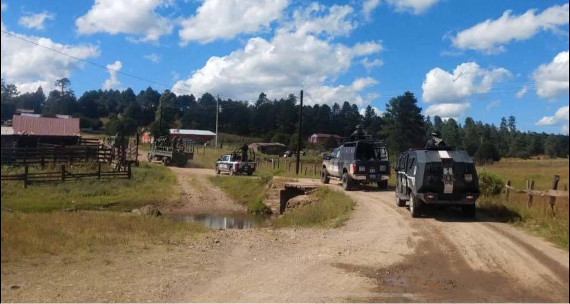 En la escena se localizó también un vehículo con la leyenda “Seguridad Privada”, siendo de la marca Chevrolet, línea S-10, color gris, modelo 2016 con placas del estado de Durango, en cuyo interior se localizaron dos armas de fuego, una calibre .223 y otra calibre .380.