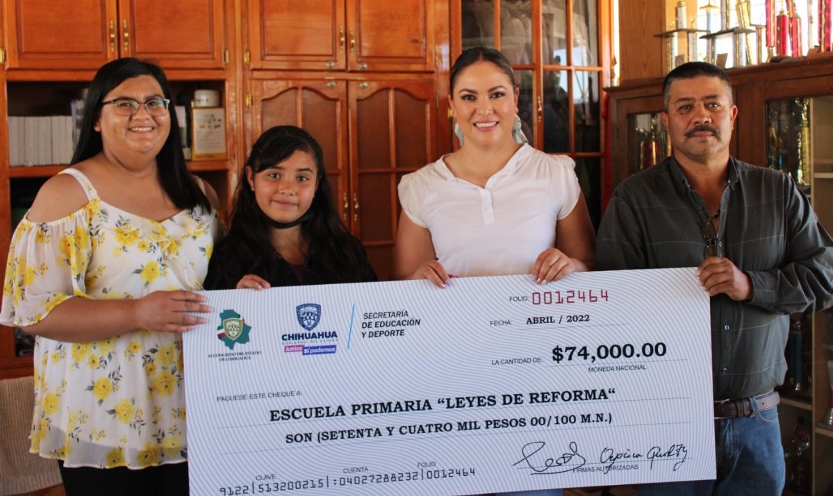 Dentro de las actividades legislativas, la diputada por el distrito 01, acudió a la escuela Leyes de Reforma ubicada en el Largo Maderal, Municipio de Madera a entregar el apoyo económico para la institución por la participación de la alumna Yacsiri Valdez en el programa infantil “Diputado 2022”, así mismo realizó la entrega de material escolar para esta institución y también para la escuela Miguel Hidalgo, ubicada en la Mesa del Huracán.
