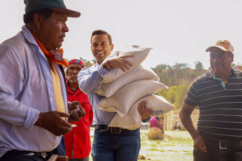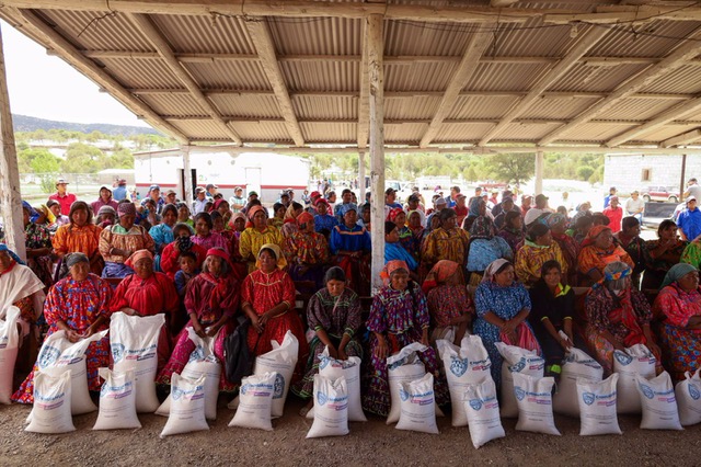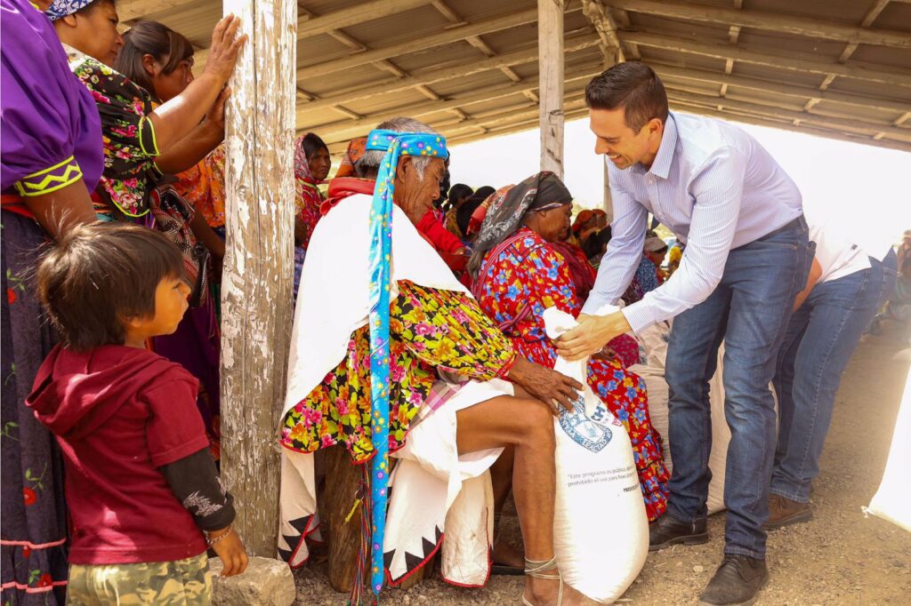 La entrega estuvo encabezada por el alcalde, Alejandro Gutiérrez; el secretario de Pueblos y Comunidades Indígenas, Enrique Rascón y el diputado local por el distrito 22, Noel Chávez, quienes se dieron cita en la comunidad de Chineachi para donar los paquetes de maíz y frijol.