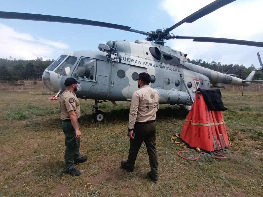 También se trasportó equipo a solicitud de la Comisión Nacional Forestal (Conafor) en San Juanito, municipio de Bocoyna, que consiste en 2 bombas, mangueras, 200 litros de químico retardante, una alberca para el helibalde y herramienta de trabajo.