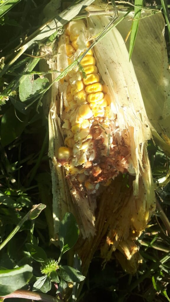 Los animales se metieron durante la noche y pisaron las plantas de maíz que están por cosecharse, a finales de octubre según explicó el propietario.