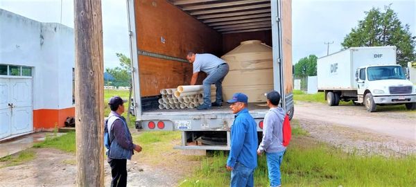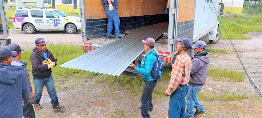 Para ello, en esa localidad se entregaron 50 sacos de cemento y 50 de mortero, 228 láminas galvanizadas, 76 paquetes de clavos, 18 tinacos con capacidad de 2 mil 500 litros cada uno, 36 tablas, un kilo de clavo para madera, un rollo de malla electro soldada, 18 cubetas de plástico y 18 rollos de alambre galvanizado; además en material de PVC: 90 tubos, 36 coples, 36 codos, 36 tapas de inserción, 18 unidades de pegamento y 18 sanitarios de 18 pulgadas.