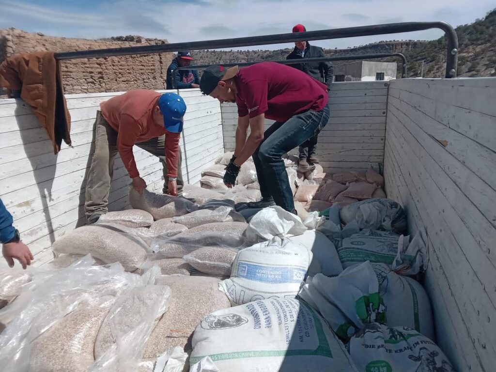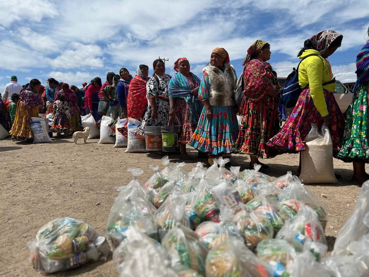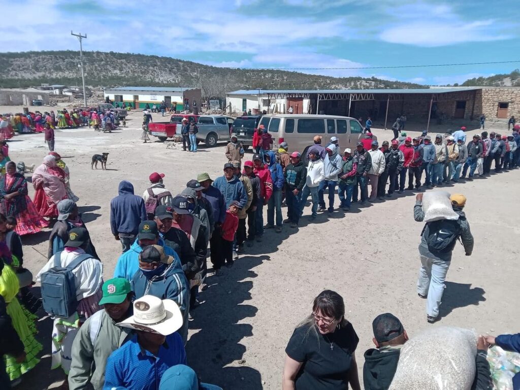 San José Baqueachi, Carichí.- Más de 500 personas 360 mujeres y 154 varones, aproximadamente, recibieron este domingo maíz y frijol recolectado por socios del Club Rotario Tarahumara, de Ciudad Cuauhtémoc.