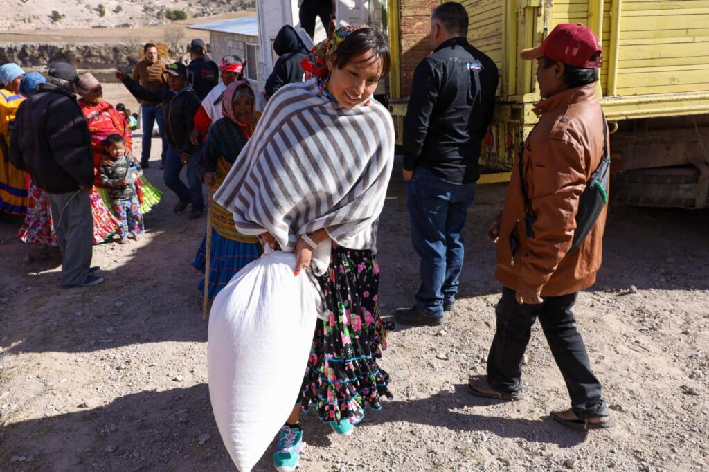 *Fueron distribuidas 32 toneladas de granos a 400 familias del pueblo rarámuri, avecindadas en la región En el marco de la estrategia integral contra la sequía que implementa el Gobierno del Estado, personal de diversas dependencias llevó a habitantes de 5 comunidades de Carichí, más de 32 toneladas de paquetes alimenticios, en beneficio de más de 400 familias.