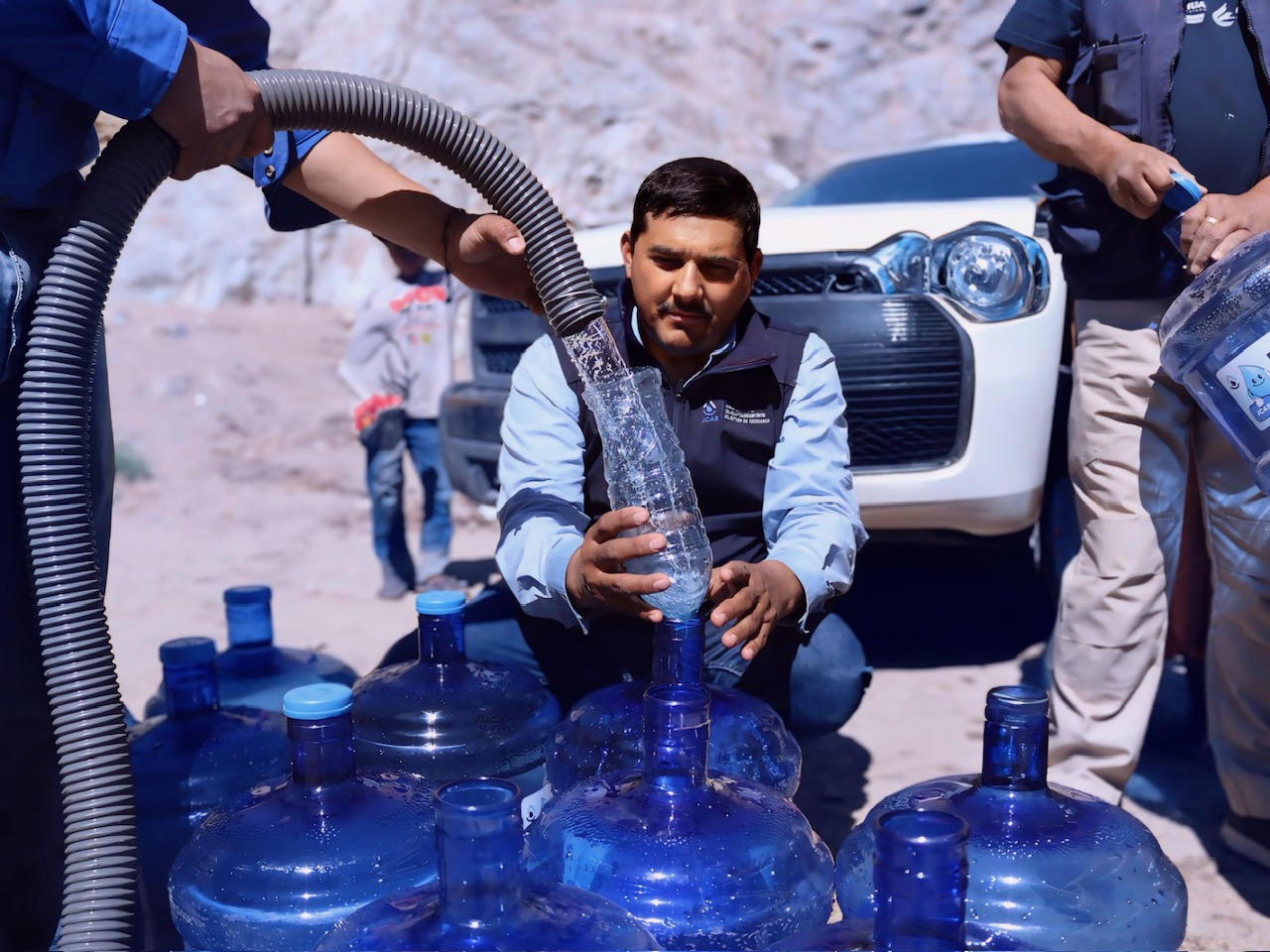 Durante la jornada se hizo entrega de garrafones y llenado de tinacos a través de una pipa con capacidad de 3 mil litros; además se ofreció una charla sobre la cultura del agua con el objetivo de promover su uso responsable y sostenible.