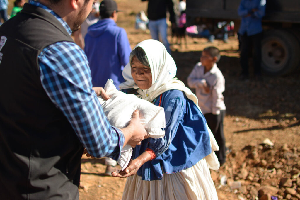 Durante la gira de trabajo por el poblado, ubicado en uno de los puntos más remotos de la sierra tarahumara, se distribuyeron paquetes de arroz y frijol de cinco kilogramos a las personas beneficiarias
