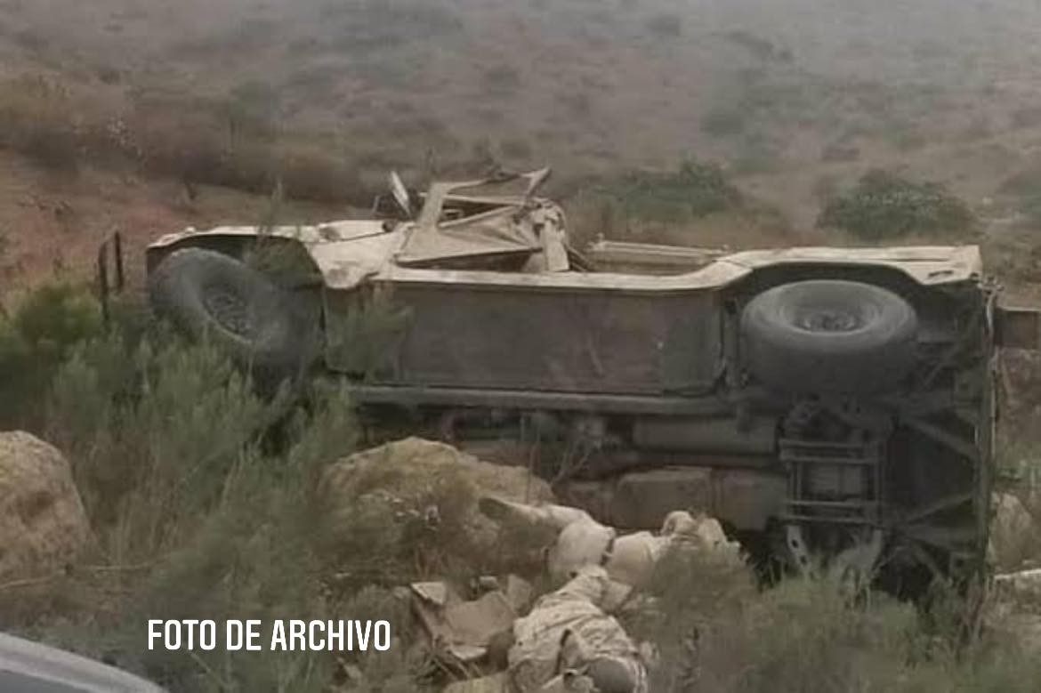 Se informó que el masculino identificado como Luis Enrique D. S., de 28 años de edad, militar en activo falleció en el lugar de los hechos luego de la volcadura del vehículo tipo Humvee en el que viajaba.