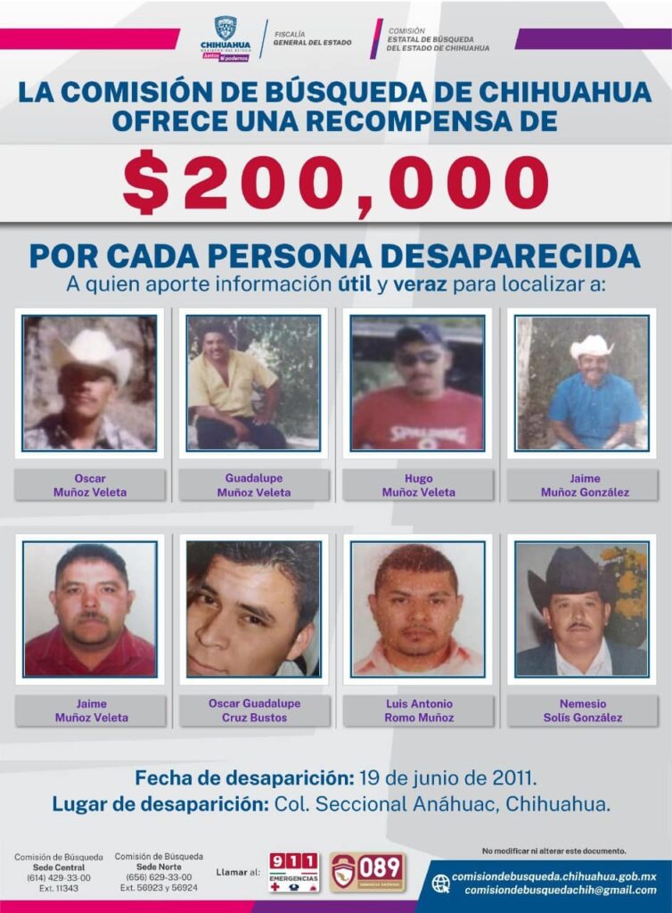 Los ocho miembros de la familia fueron vistos por última ocasión el 19 de junio del año 2011 en el Seccional Anáhuac, Chihuahua.
