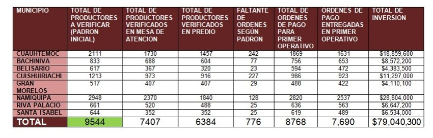 Por último, hizo notar que en ciclos agrícolas anteriores se beneficiaría a 9 mil 544 productores, sin embargo en esta ocasión después del operativo de verificación de predios y productores solamente se logró localizar a 8 mil 768.