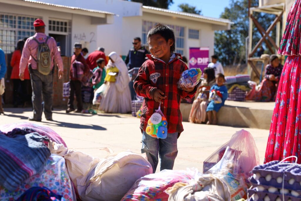 Como parte de la estrategia Juntos por la Sierra Tarahumara, el DIF Estatal y la Secretaría de Comunidades y Pueblos Indígenas entregaron a 680 familias de la comunidad de El Cuervo, municipio de Batopilas, apoyos alimentarios, ropa y calzado.