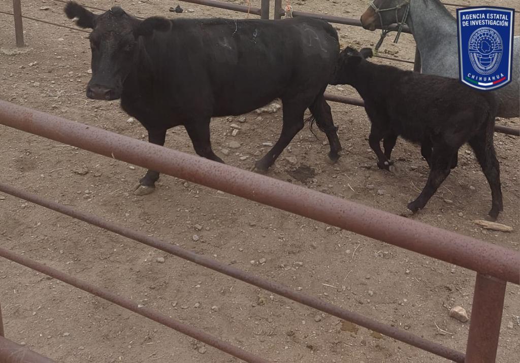 Mientras que, en la comunidad de Santa Clara, localizaron una vaca y su cría de la raza Angus, las cuales están marcadas con un fierro distinto al que les corresponde.