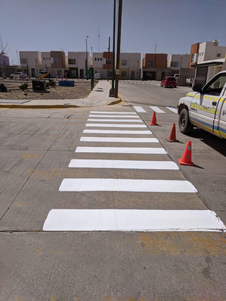 De igual manera, el personal de señalización de la Policía Vial pintó pasos peatonales y cajones de estacionamiento en dos estancias infantiles, ubicadas en las calles Presa Boquilla y Américas y calle 21 entre Morelos e Hidalgo, también en las calles perimetrales de los parques de las colonias Madeira tercera etapa y Senderos del Tecnológico, en éste último donde también se colocaron boyas reductoras de velocidad.