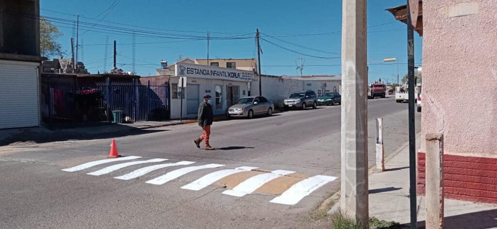También, las cuadrillas de personal pintaron pasos peatonales en el Jorge Castillo Cabrera, a la altura del CESSA Tierra Nueva y de las instalaciones de la subdelegación de Cruz Roja y de la Coordinación Municipal de Protección Civil.