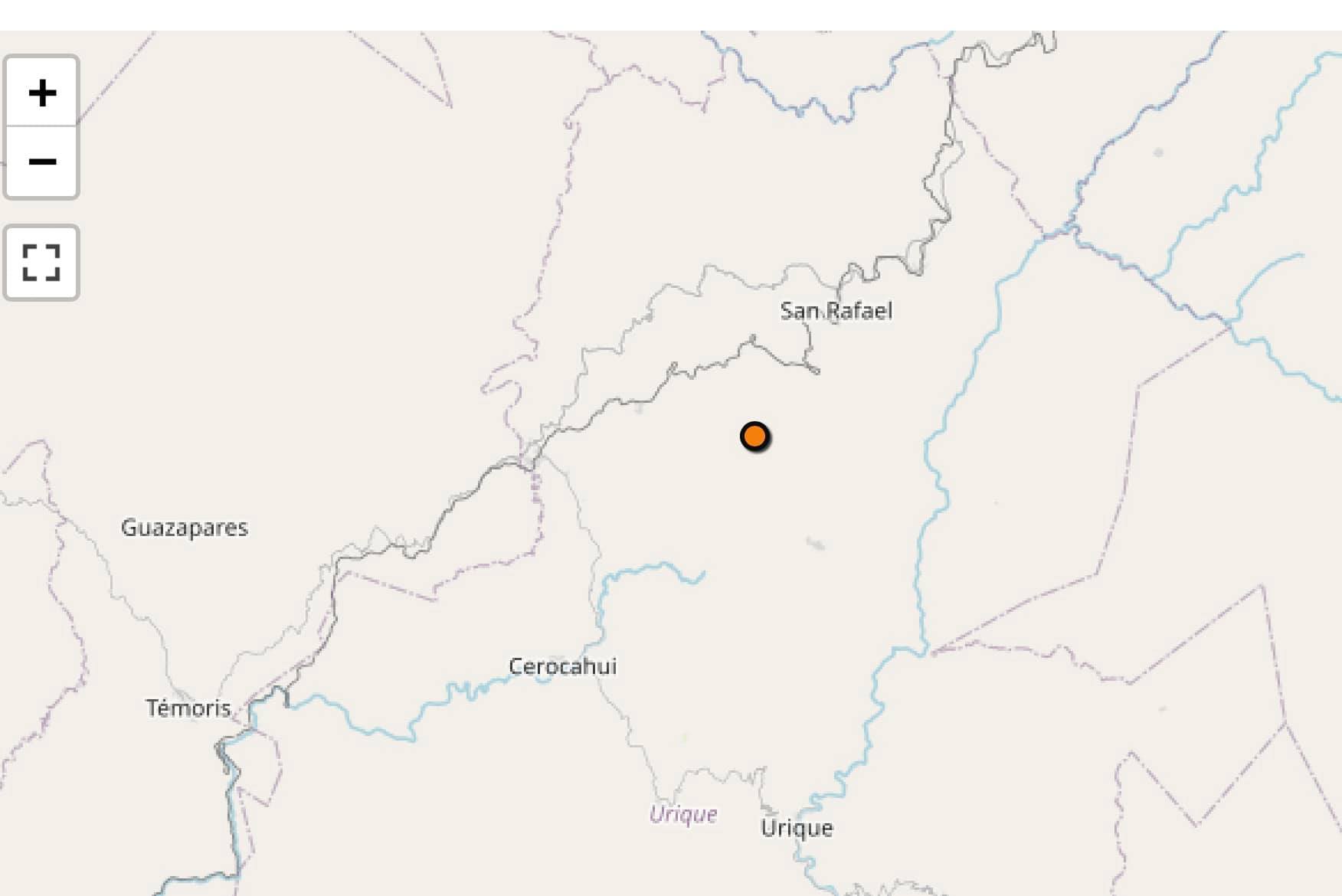 El reporte señala que el movimiento telúrico tuvo como epicentro a 130 kilómetros al noroeste de El Fuerte, Sinaloa, es decir, muy cerca del poblado de San Rafael, municipio de Urique, Chihuahua.
