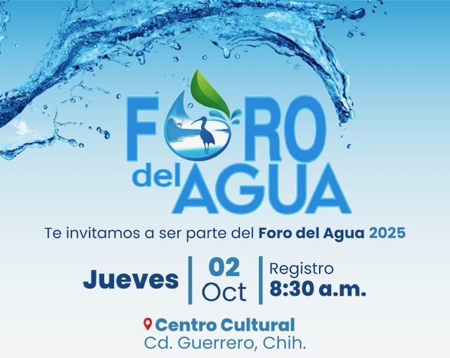 La Secretaría de Desarrollo Rural del Gobierno del Estado invita a productores, estudiantes y comunidad en general a participar en el Foro del Agua 2025, que se celebrará el próximo 2 de octubre en el Centro Cultural de Ciudad Guerrero, a partir de las 08:30 horas.