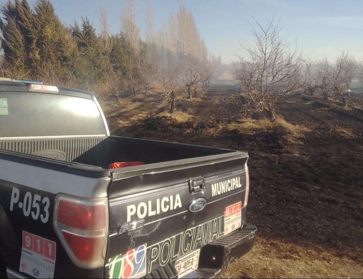 Al arribar al lugar, los efectivos policiacos tuvieron a la vista una nube de humo y fuego el cual provocaba poca visibilidad del camino, debido a una quema de pastizal en una huerta de manzana.