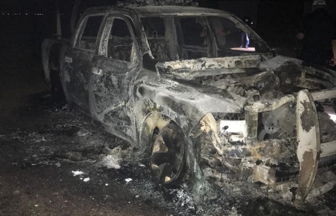 En la escena se localizó también el vehículo oficial de la marca Dodge, Ram, cuatro puertas, modelo 2017, totalmente destruido por el fuego.