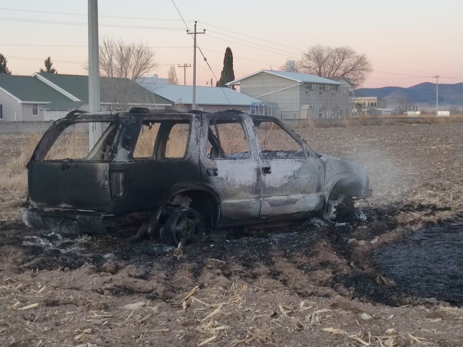 Cuauhtémoc, Chih.-Una vagoneta se calcinó por completo y fue localizada por la policía municipal a las 06:40 horas de este sábado 12 de febrero, en el kilómetro 14 de la carretera Cuauhtémoc a Álvaro Obregón.