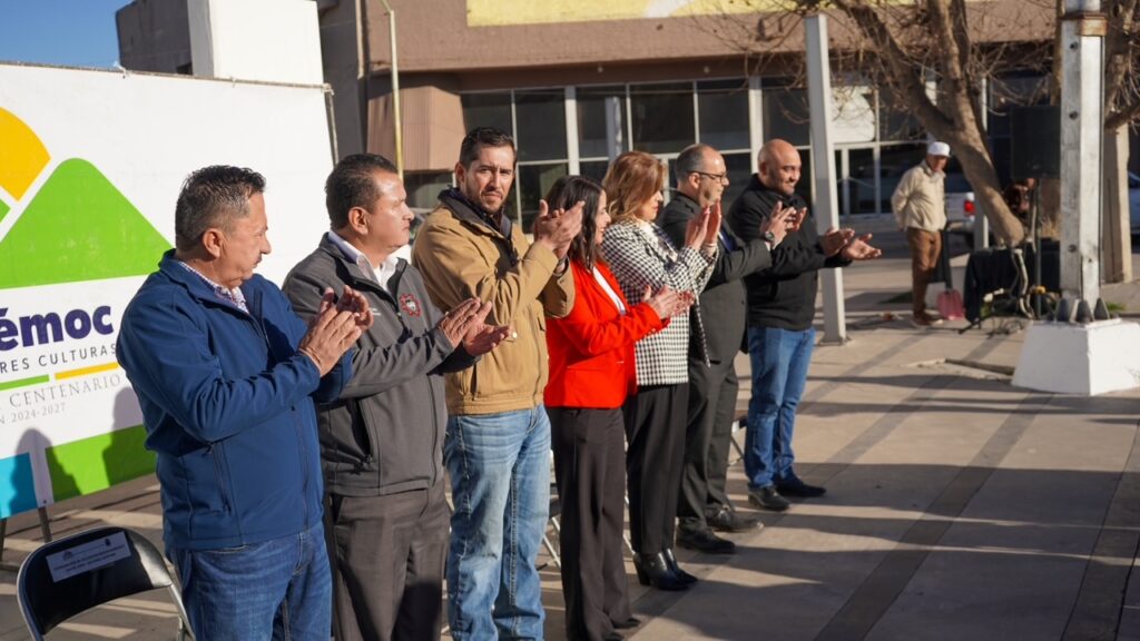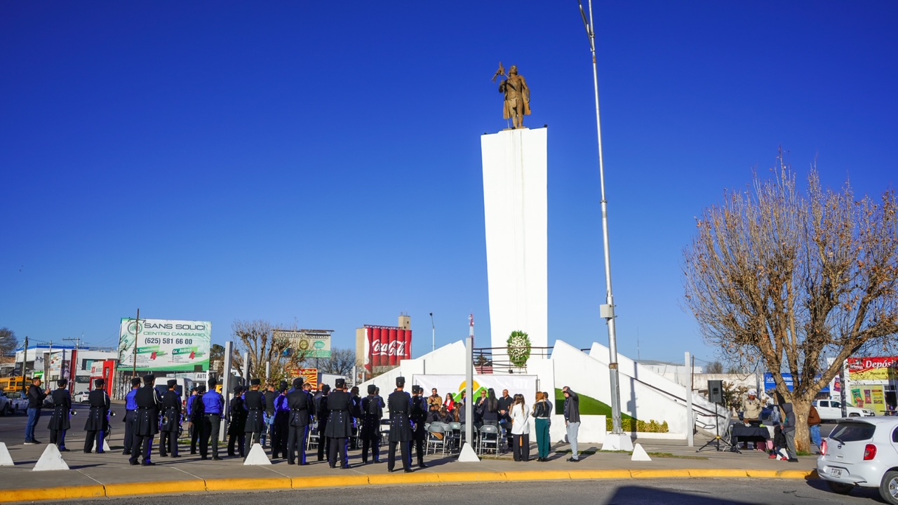 Cd. Cuauhtémoc, Chih.- En representación del alcalde Beto Pérez, la secretaria municipal Luly Pérez de Anda, encabezó la ceremonia cívica con motivo del 500° aniversario luctuoso de Cuauhtémoc, Último Emperador Azteca.