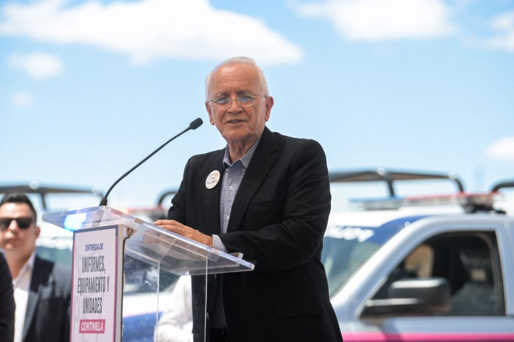 Tras entregar de forma simbólica el equipamiento a los alcaldes de los municipios de Cuauhtémoc, Saucillo y Santa Bárbara, destacó que el Gobierno del Estado en sinergia con los ayuntamientos, buscan garantizar un quehacer policiaco óptimo.