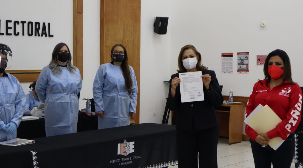 Del Comité Ejecutivo Nacional estuvieron en su registro ante el IEE, Lorena Piñón, Secretaria de Gestión Social y Montserrat Arcos, dirigente de la Organización Nacional de Mujeres Priistas.