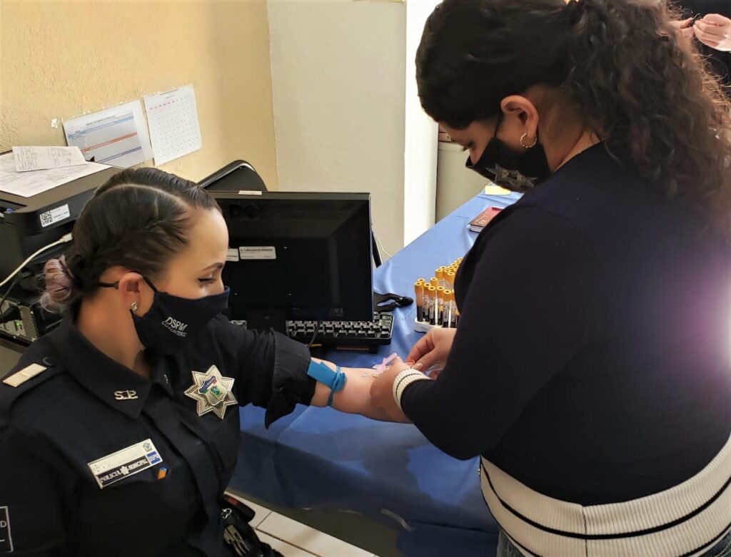 Cuauhtémoc, Chih.-Con fines de prevención y para evitar posibles brotes de contagio entre el personal de las diferentes corporaciones policiacas, la Dirección de Seguridad y Vialidad Pública Municipal, en coordinación con la Fundación del Empresariado Chihuahuense (FECHAC) aplica pruebas para la detección del virus SARS-CoV-2 a la totalidad de su personal.
