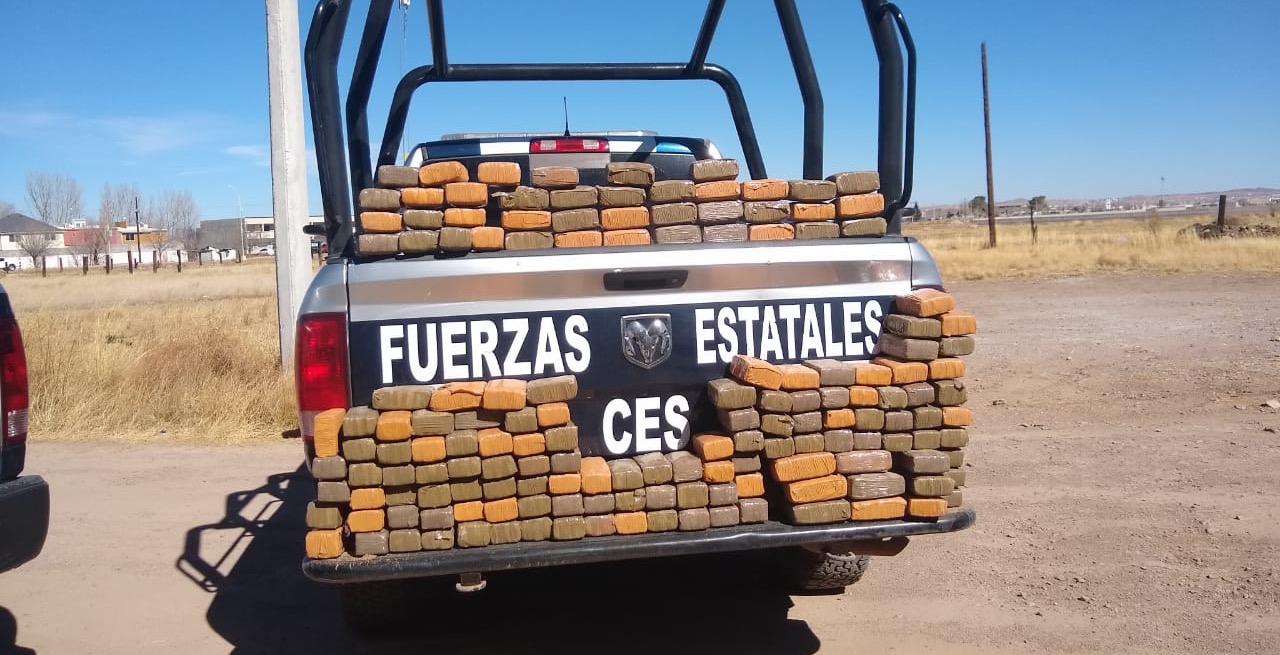 Elementos de la Secretaría de Seguridad Pública Estatal, localizaron en las inmediaciones de la carretera que conduce de la localidad de La Junta al municipio de Cuauhtémoc un vehículo abandonado cargado con más de 80 kilogramos de mariguana.