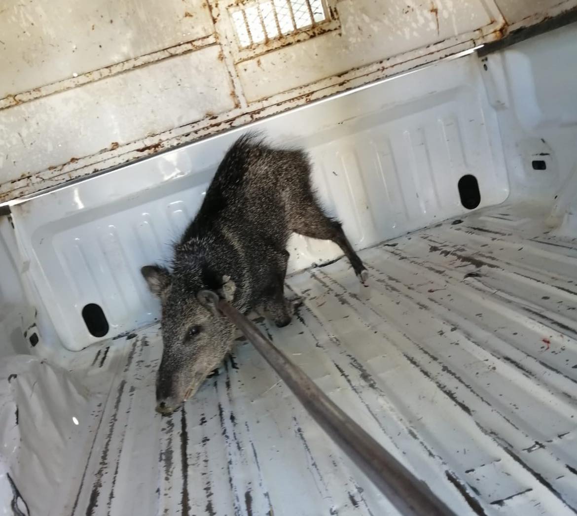 Se trata del segundo pecarí reubicado en el último mes. Son especies endémicas que ven invadido su territorio o bien, ante la temporada de sequía, buscan alimento y agua.
