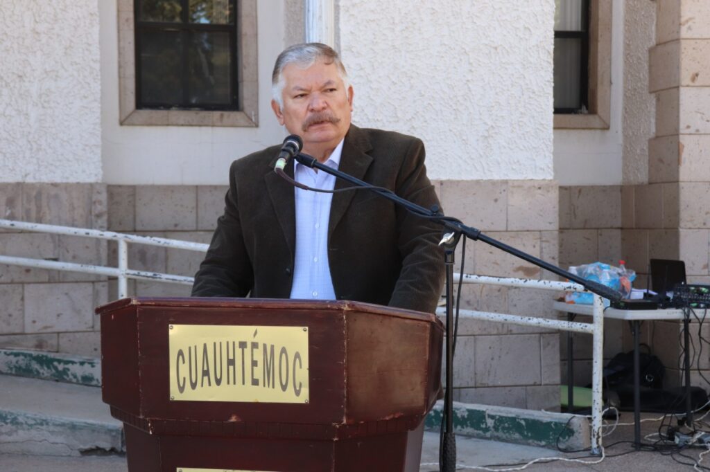 Cuauhtémoc, Chih.-Con honores e izamiento a toda asta de la bandera, autoridades civiles y militares, así como miembros de las logias masónicas, conmemoraron el 215 aniversario del natalicio del ex presidente, estadista y reformador de Derechos Humanos, Benito Pablo Juárez García.
