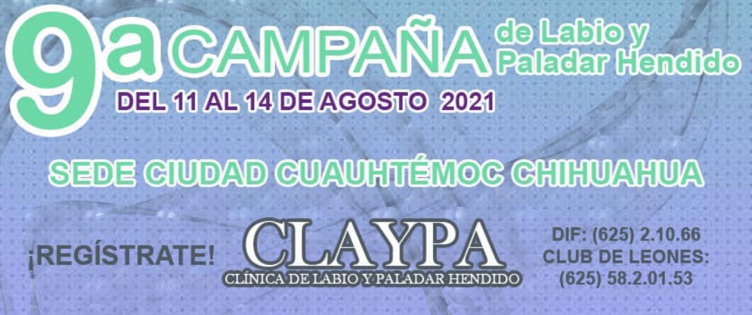 El Gobierno Municipal de Cuauhtémoc a través del Sistema DIF y en coordinación con el Club de Leones, la Fundación del Empresariado Chihuahuense y la Clínica de Labio y Paladar Hendido (CLAYPA), mantienen disponibles las inscripciones de personas interesadas en participar en la novena Campaña de Labio y Paladar Hendido “Transformando Sonrisas”.