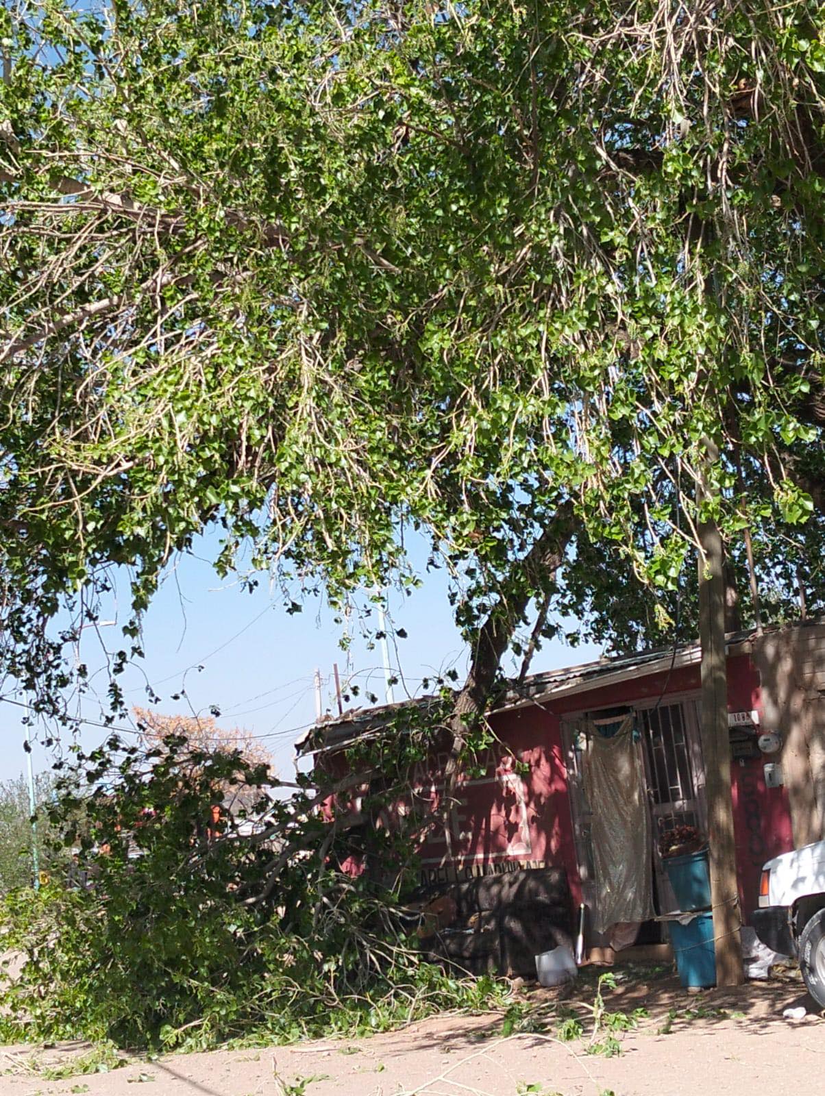 Cuauhtémoc, Chih.-La Policía de Vialidad y Tránsito brindó apoyo para la seguridad en un incidente por fuertes vientos, a las 10:04 horas de este 02 de abril, en las calles 10a y Sebastian Lerdo de Tejada.