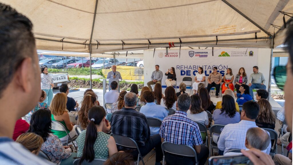 En su mensaje, el presidente municipal Elías Humberto Pérez Mendoza, expresó un agradecimiento al director regional del Gobierno de México, Óscar Leos, por el trabajo conjunto que ha hecho posible la inversión de más de 100 millones de pesos en obras de pavimentación en Cuauhtémoc.