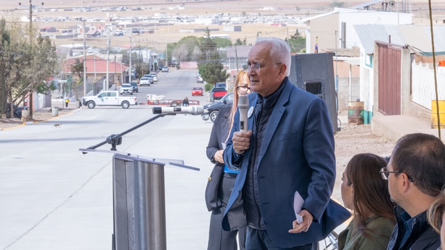 Cd. Cuauhtémoc, Chih.- El presidente municipal Beto Pérez encabezó el evento de inauguración de la pavimentación de un tramo de la calle Quintana Roo, entre 24 y 28, que se realizó con inversión del programa Repuve, por un total de $3,116,111.00.