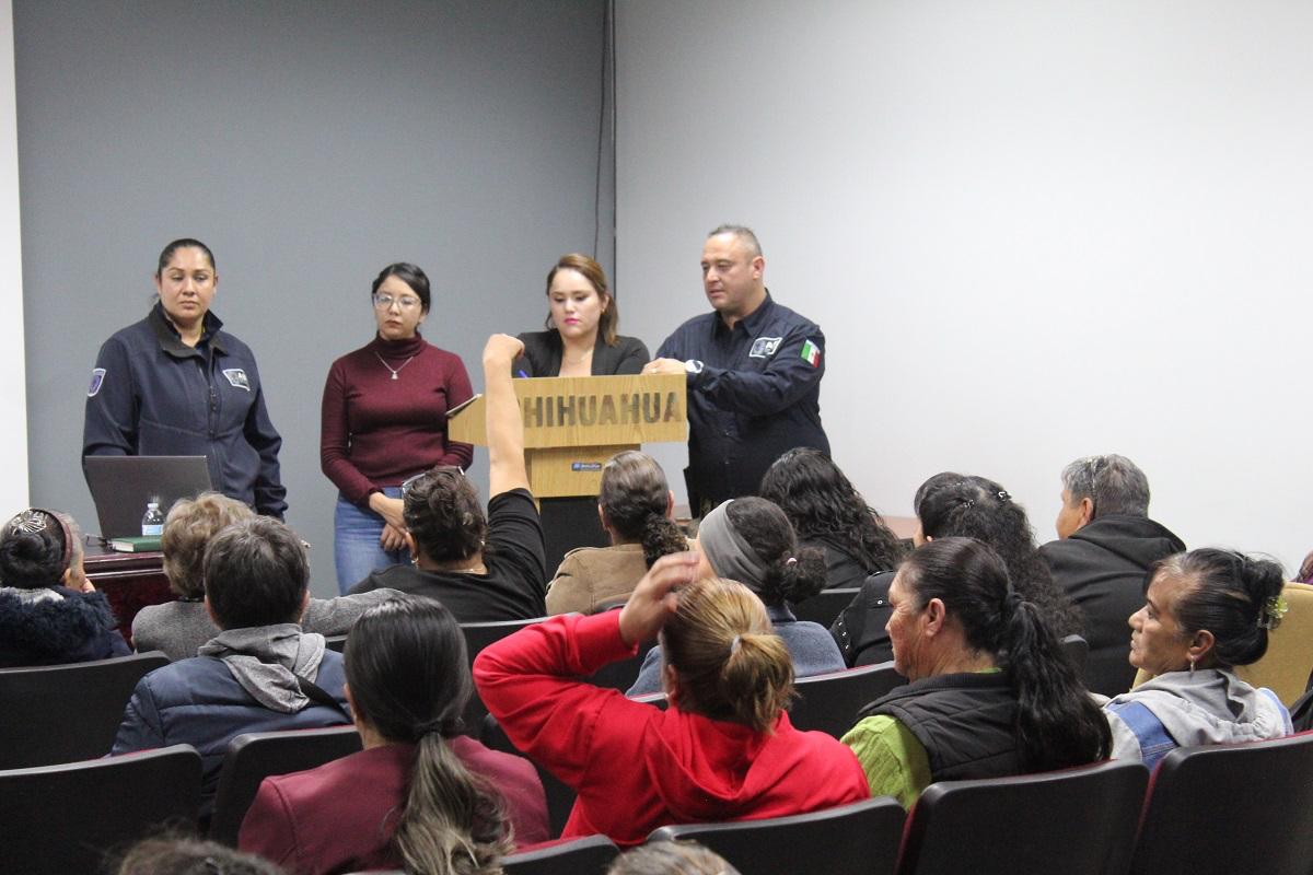 Estuvieron presentes integrantes del Centro de Derechos Humanos de las Mujeres (Cedehm), encabezados por Gabino Gómez y fueron recibidos en el auditorio de la Fiscalía de Distrito Zona Occidente.
