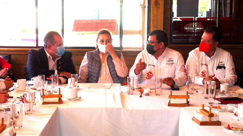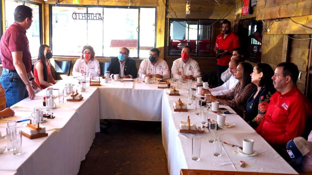 En el acercamiento con los integrantes del organismo comercial que encabeza su presidente Julián Estrada, el candidato a la Presidencia Municipal, estuvo acompañado por la candidata a la Gubernatura, Graciela Ortiz.