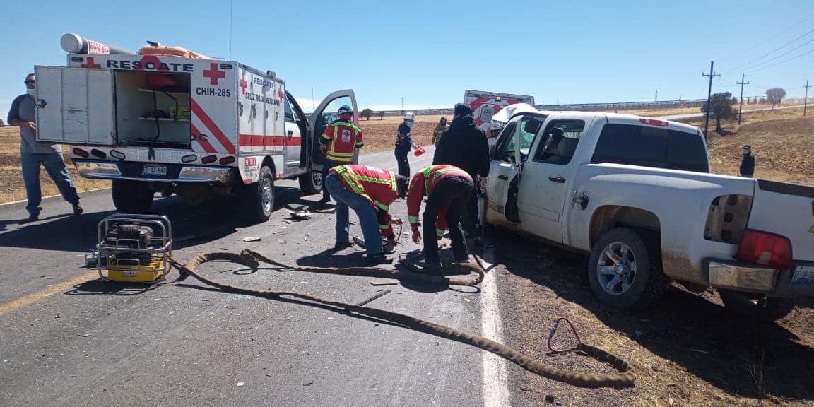 Cuauhtémoc, Chih.- Fuerte choque de frente registrado en la carretera que conduce al municipio de Carichí dejó como saldo tres personas lesionadas, una de ellas de gravedad.