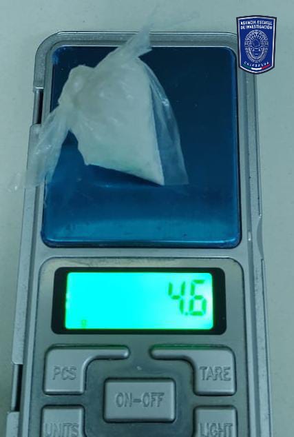 Mientras que, a José C. C., de 48 años de edad, se le aseguró una bolsa que contenía también una sustancia granulosa y cristalina que dio un peso de 5.9 gramos de la metanfetamina.