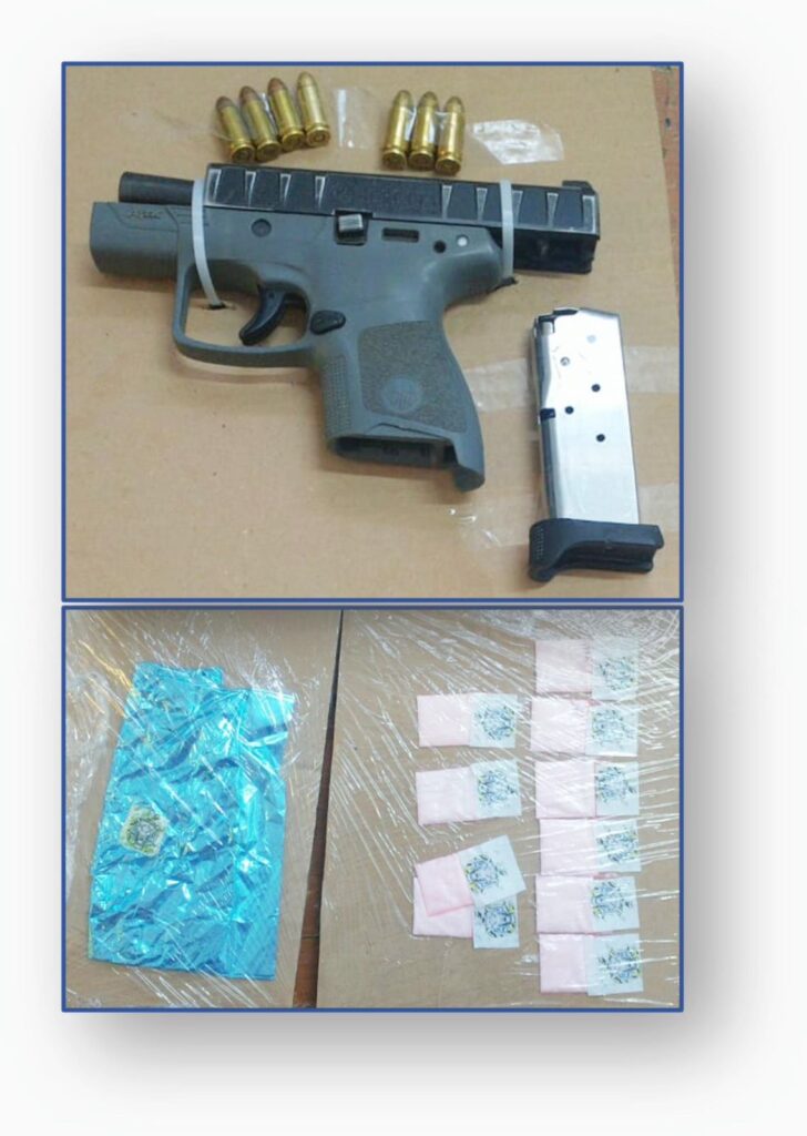 Posteriormente, al solicitar datos a la Plataforma Centinela se les notificó que el automotor había estado involucrado en distintos hechos delictivos, al revisar el interior del vehículo se encontró, un arma de fuego, un cargador, 7 cartuchos útiles, un envoltorio de presunta marihuana y 10 envoltorios de presunta metanfetamina.