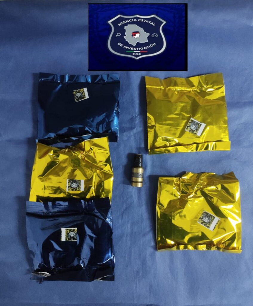 Cuauhtémoc, Chih.-Elementos de la Agencia Estatal de Investigación (AEI), detuvieron en flagrancia a un adolescente en posesión de cinco paquetes con una hierba verde, seca y olorosa con las características propias de la mariguana, aparentemente para su distribución.