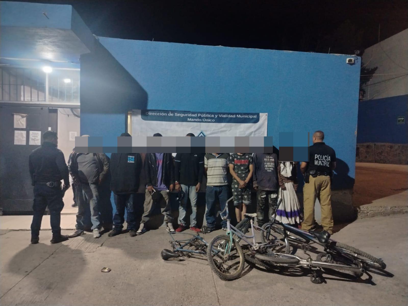 Las ocho personas —siete adultos y un menor— fueron aseguradas por faltas administrativas (el menor en calidad de presentado) relacionadas con el consumo de sustancias, ingestión de alcohol en la vía pública y alteración del orden. Posteriormente, fueron trasladadas al Centro de Detenciones Municipal, donde quedaron a disposición del juez cívico. El menor fue presentado conforme a los protocolos correspondientes.