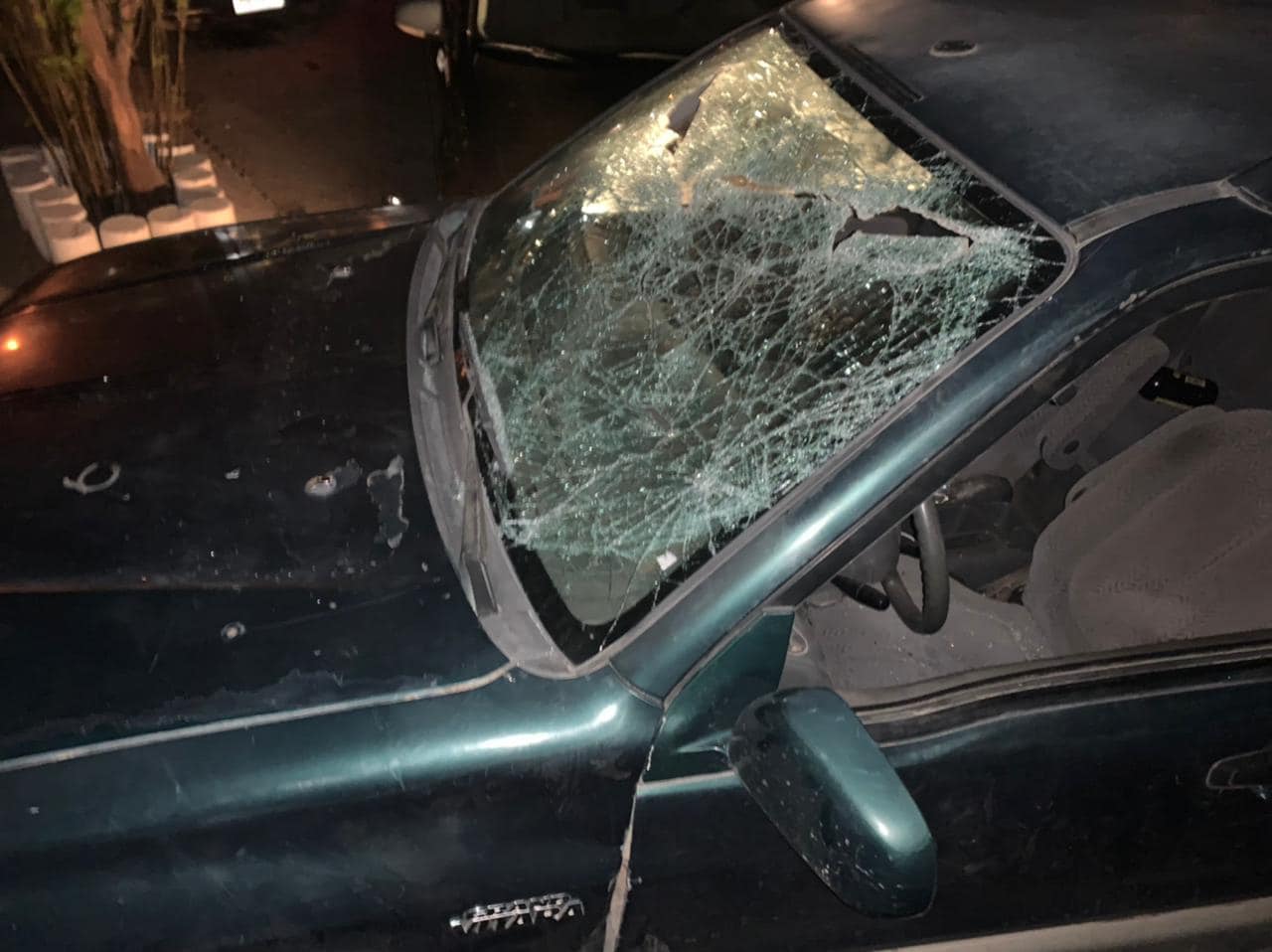 En el lugar un hombre de 55 años de edad indicó que el hoy detenido se encontraba agresivo y en visible estado de ebriedad, y que momentos antes había ocasionado múltiples daños a un vehículo de su propiedad, siendo este un Suzuki, Vitara, color verde, modelo 1999.