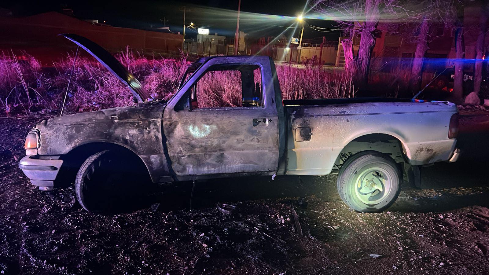 Al arribar al lugar alrededor de las 00:05 horas, los agentes localizaron una camioneta tipo pick up color blanco, cabina sencilla, envuelta en llamas, por lo que se solicitó de inmediato el apoyo del Cuerpo de Bomberos de la Base Cuauhtémoc, quienes acudieron con las unidades correspondientes y lograron sofocar el incendio.